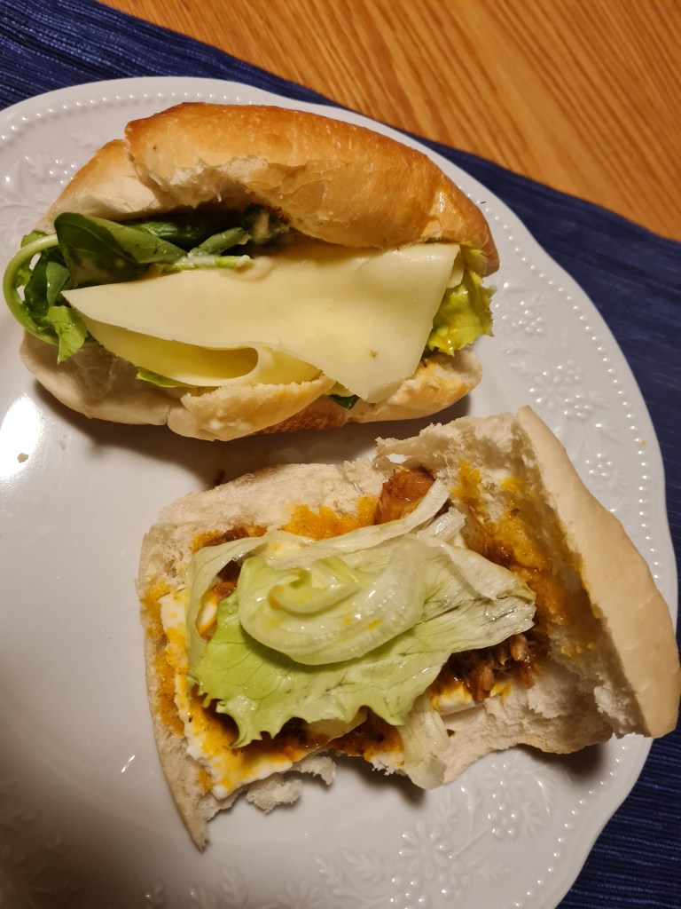 Pegue o pão e corte al meio e abra -o e coloque a maionese depois o hams depois o alfasee emseguida a rucula e depois o limão.